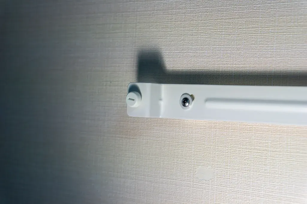 石膏ボードの壁は、柱のある部分にしか釘を打てないため、このような専用の留め具を使うことで、安定した設置が可能となる。