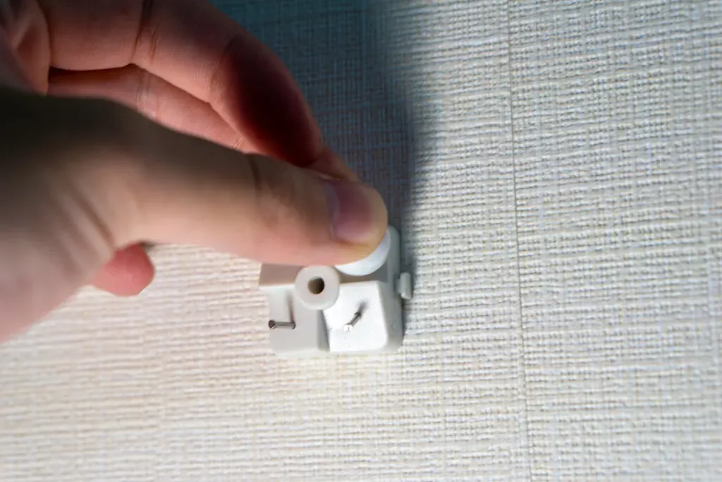 まずは石膏ボード用の留め具を壁に取り付ける。付属のキャップを使って画像のように押し込むと取り付けやすい。